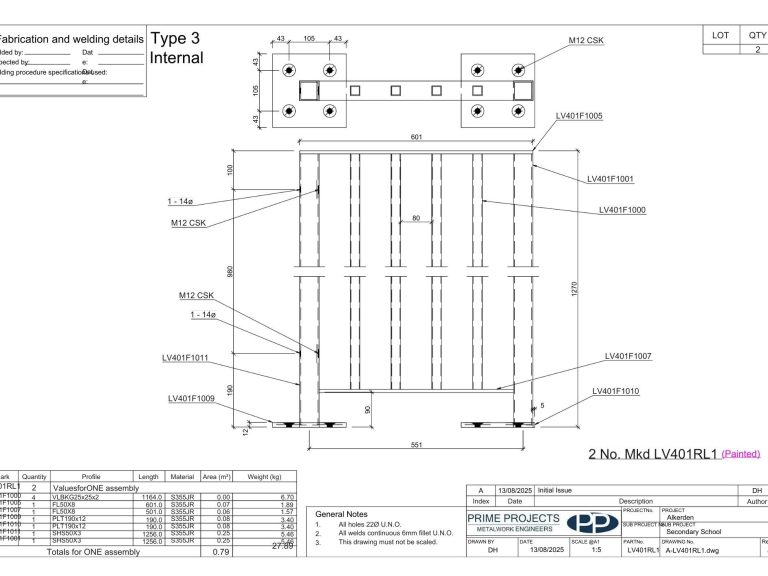 Fabrication packs are one of the most important parts of the design process, to make sure the project runs smoothly the pack that is provided needs to be filled with information to make sure the manufacture has all the information they require to make sure everything is made correctly. We supply part PDF's, NC files, DXF files and bill of material lists, this information allows the manufacture make sure the process runs a smoothly without issues.